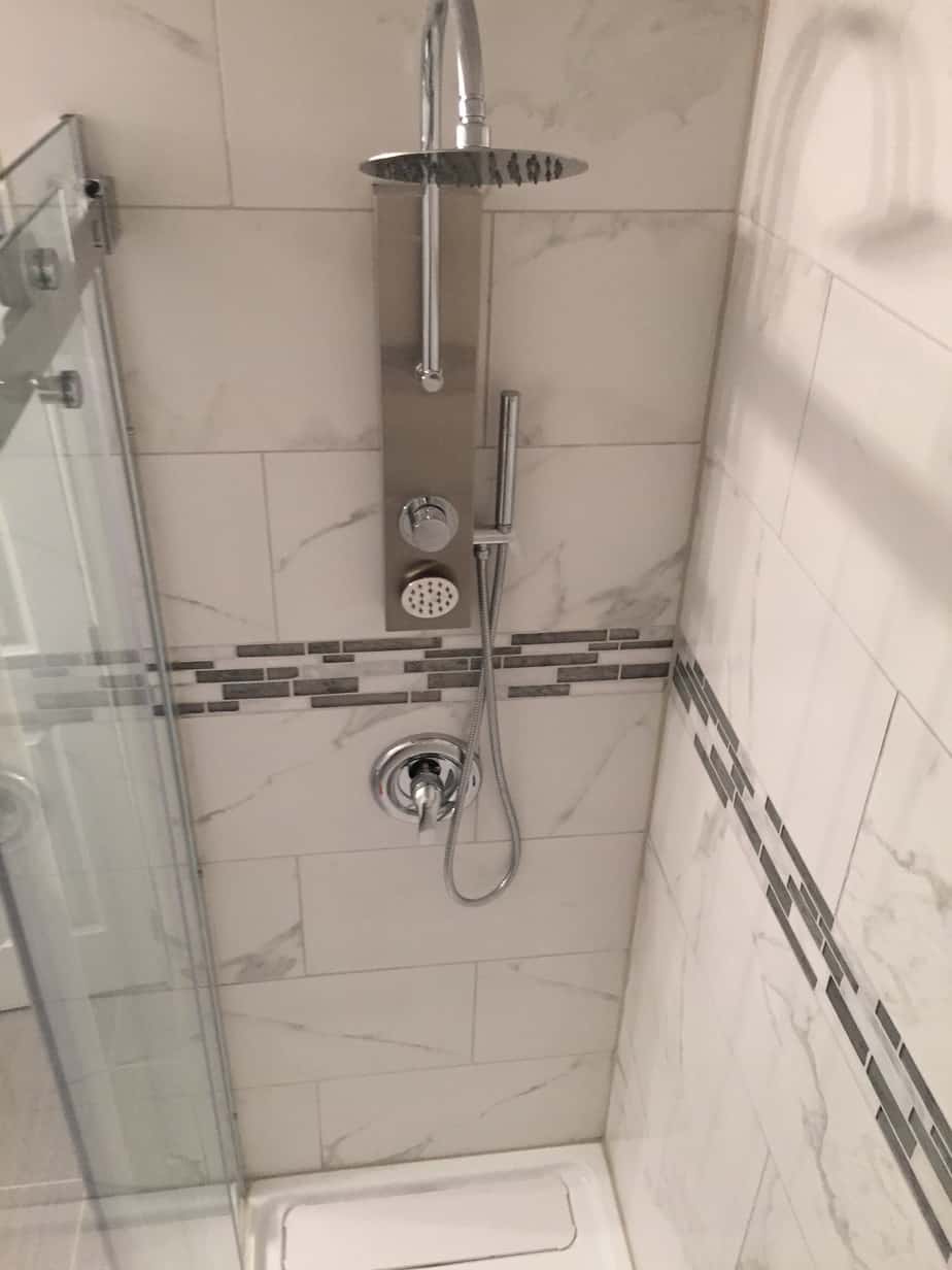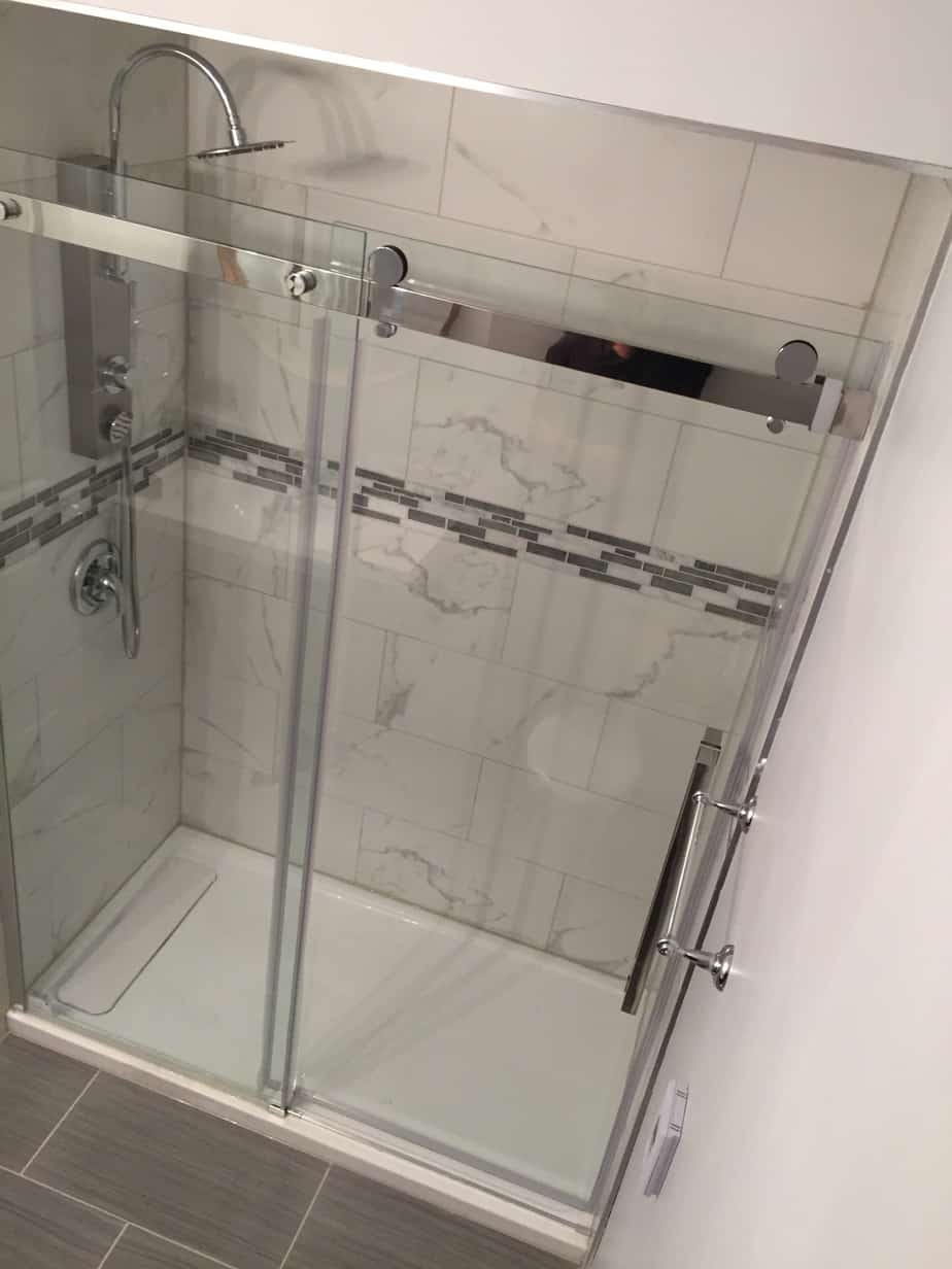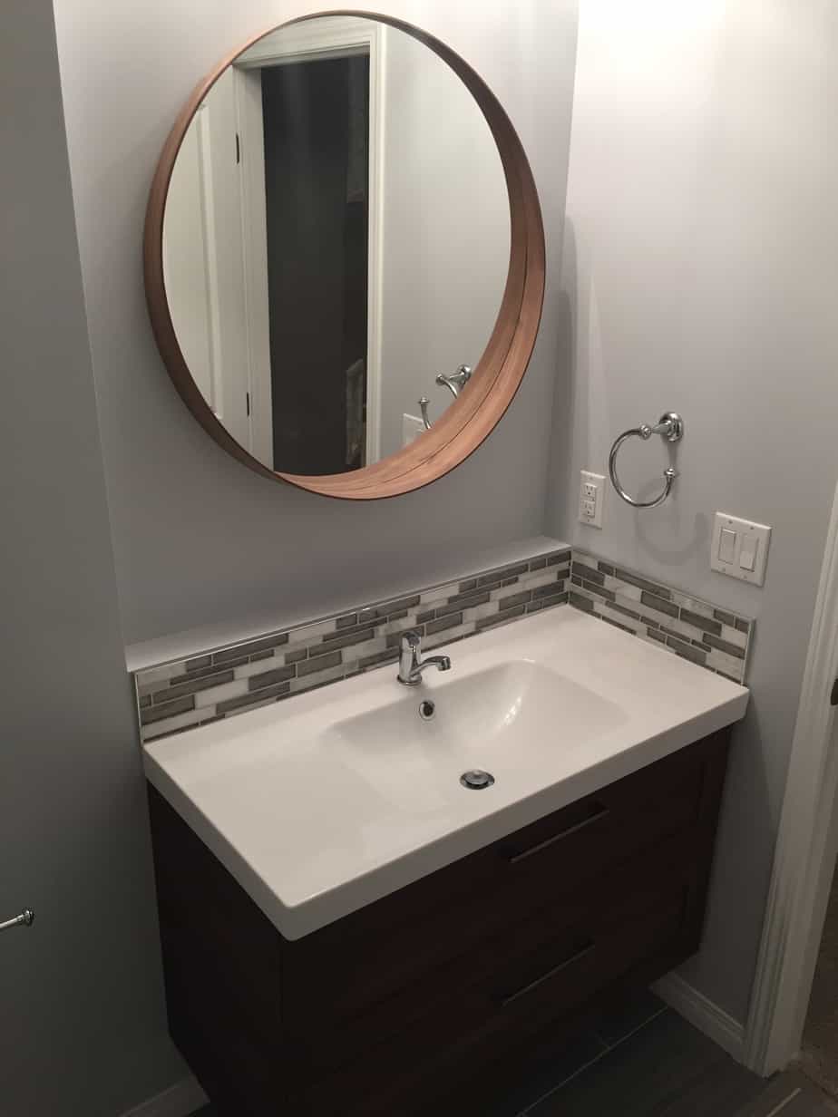 Ravenswood Our ravenswood basement development incorporated a 2 story castle playhouse along the stairs. A generous living area with dry bar and computer station welcome you to the lower level. The bathroom includes a custom shower with Calcutta tile and heated floors.